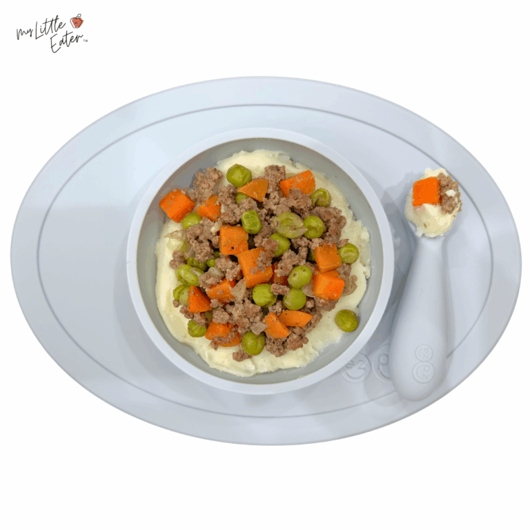 Ground beef in mixed dishes is totally safe for baby! Whether that be in the form of a bolognese sauce with pasta, or shepherd’s pie. If you want a delicious shepherd’s pie recipe that’s safe for baby, check out my 60 Day Baby Led Feeding Meal Plan.